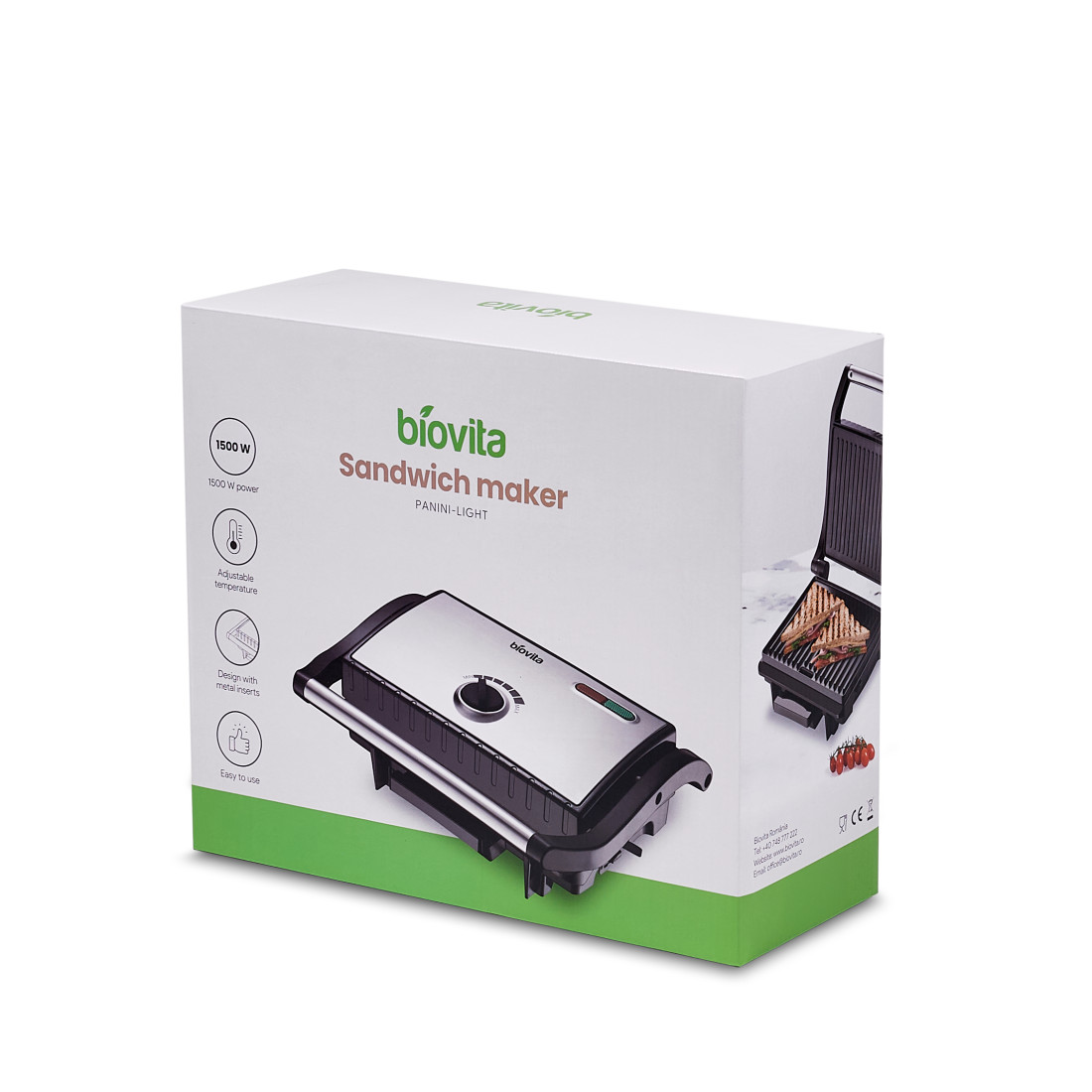 PANINI-LIGHT este un ajutor de încredere în bucătăria ta pentru prepararea cu ușurință a sandwich-urilor apetisante și a multor alte mâncăruri. Cu puterea de 1500W, acest aparat versatil îți permite să găteșți rapid și să te bucuri de arome intense.