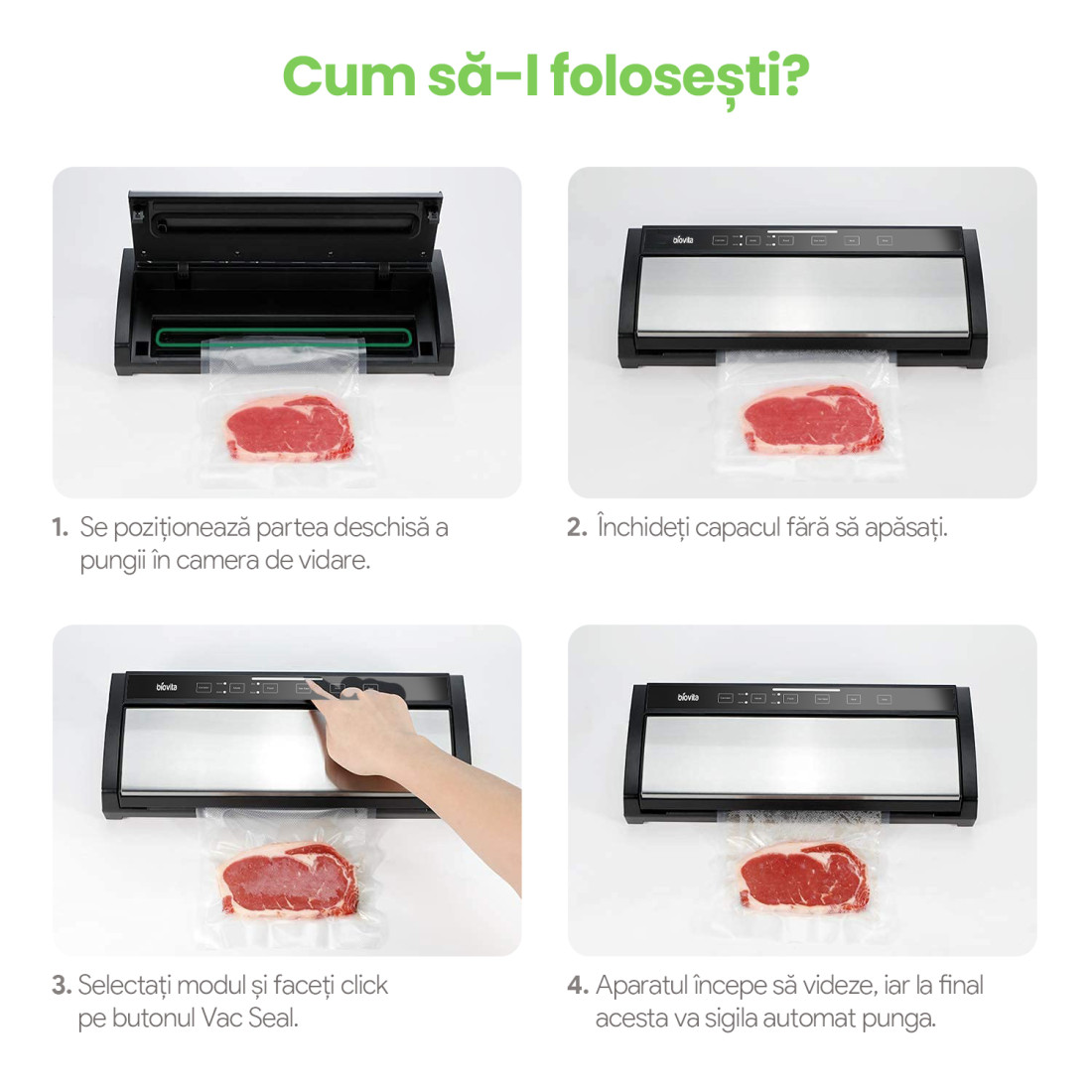 - Folosind rolele de vidare puteți să creați propriile pungi, în funcție de mărimea alimentelor pe care doriți să le vidați.