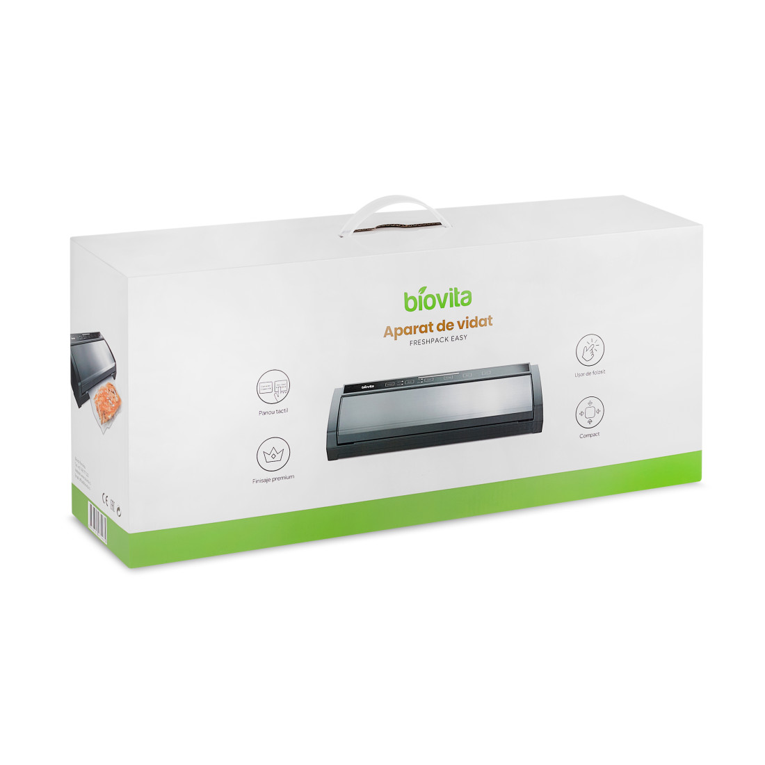 Cu noul aparat de ambalare in vid, Biovita FreshPack Easy, alimentele vor putea fi păstrate proaspete de până la 8 ori mai mult timp.