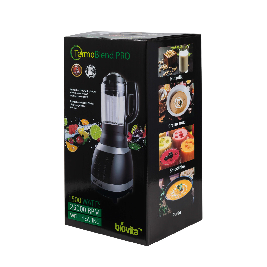 Blender cu încălzire Biovita TermoBlend Pro este un blender foarte util la prepararea alimentelor care necesită fierbere și măcinare. Acest model de blender este unic în România.
