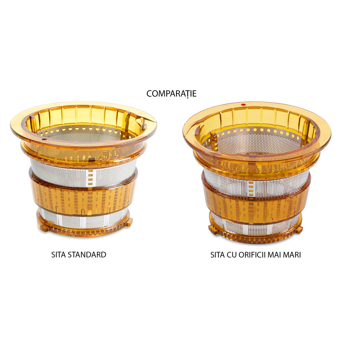 Cu ajutorul ei se pot obține sucuri cu mai multă pulpă decât cu sita standard.