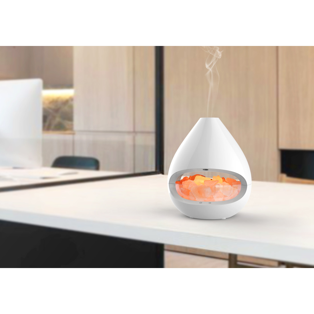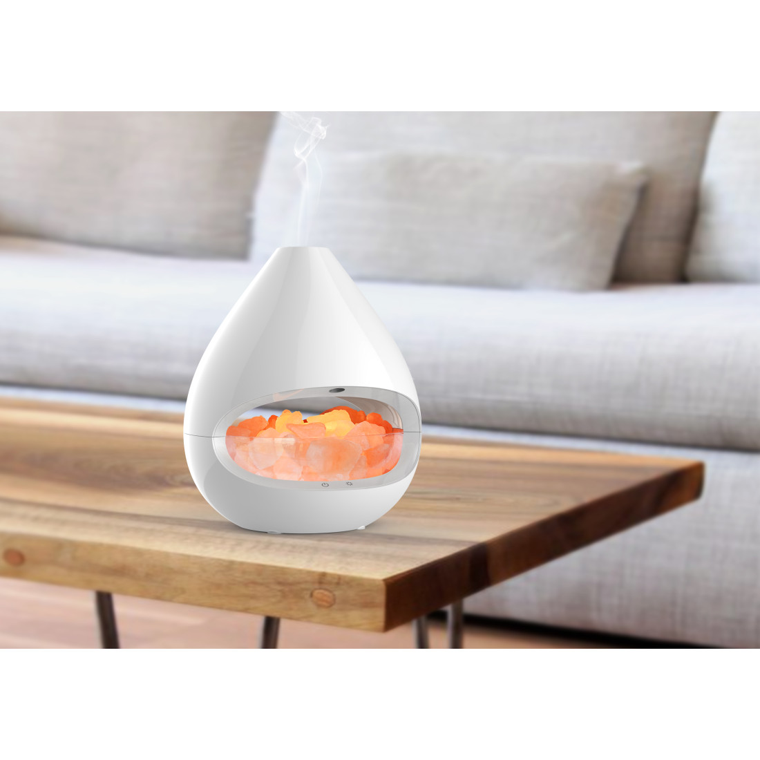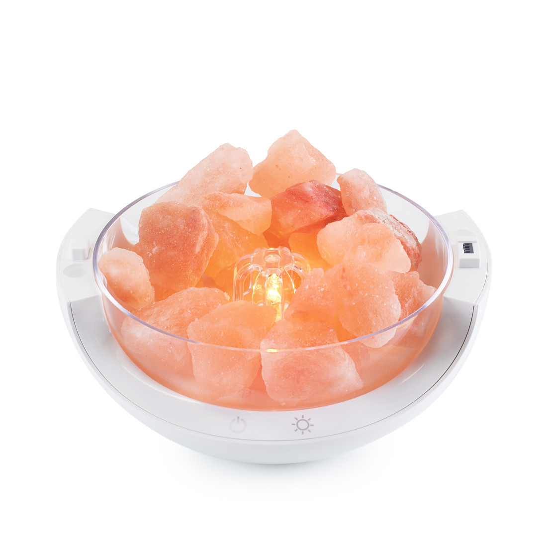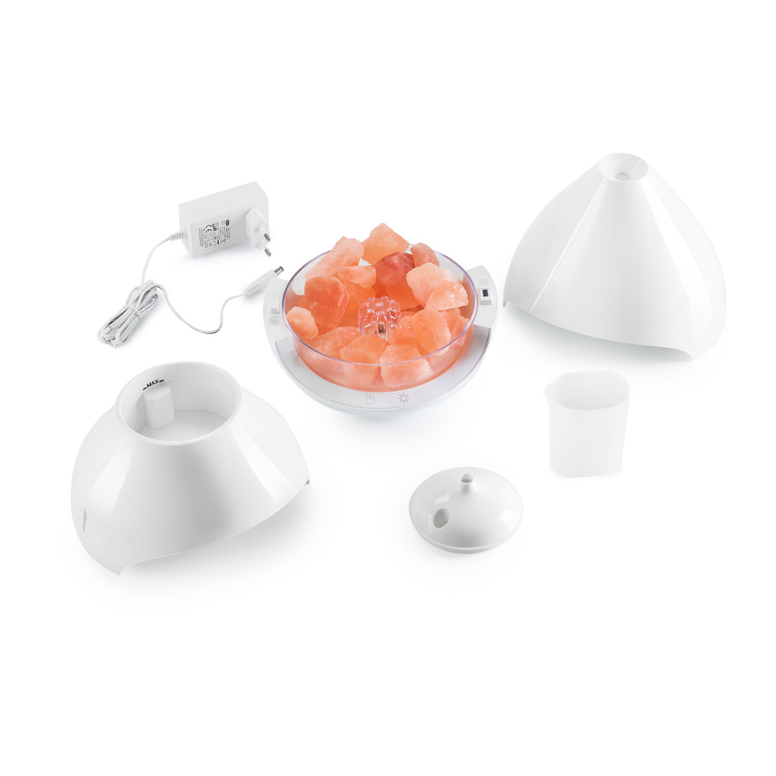 LUMINA HALOGEN: Difuzorul dispune de un bec halogen de 10W, pentru iluminarea cristalelor de sare. Această lumină caldă crează o atmosferă liniştitoare, de relaxare. Se pot alege 5 nivele de intensitate a luminii.
