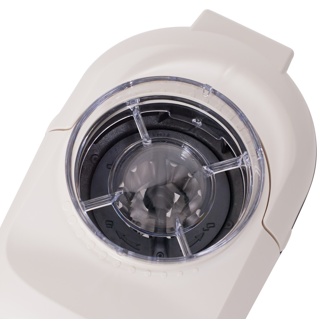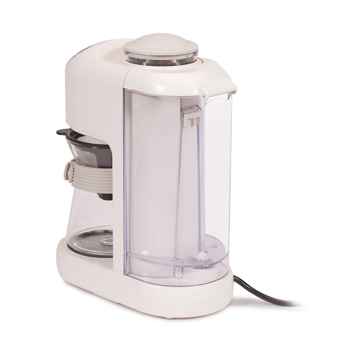 Cafetiera este echipată cu o râșniță integrată care macină automat cafeaua înainte de preparare. Procesul este complet automat, fără pași suplimentari, astfel încât cafeaua este măcinată și preparată într-un singur ciclu. Sistemul de siguranță al aparatului permite funcționarea doar atunci când recipientul pentru boabe este montat corect.