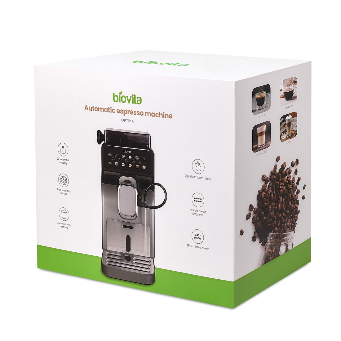 Espressorul automat Biovita OPTIMA este ușor de utilizat și de întreținut, iar designul elegant se potrivește oricărui decor modern. Bucură-te de aroma și gustul autentic al cafelei proaspăt preparate cu acest espressor automat de înaltă calitate.