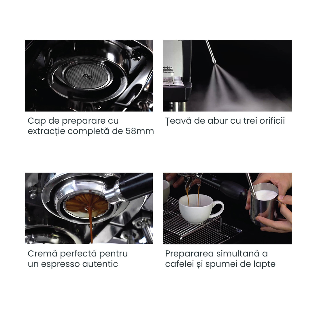 Versatilitatea este cuvântul cheie - poți prepara simultan cafea și abur, economisind timp prețios în orele aglomerate. Funcția de spumare a laptelui și cele trei programe prestabilite, plus opțiunea de personalizare, îți oferă libertatea de a experimenta cu rețete diverse.