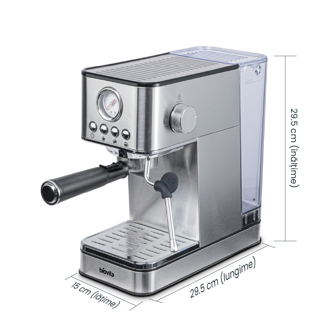 Acest model este ușor de folosit și de curățat, iar carcasa din inox îi dă un aspect clasic și minimalist. Bucurați-vă de beneficiile unei cafele de calitate și savurați băuturile preferate într-un mod rapid și ușor cu espressorul ROYAL.