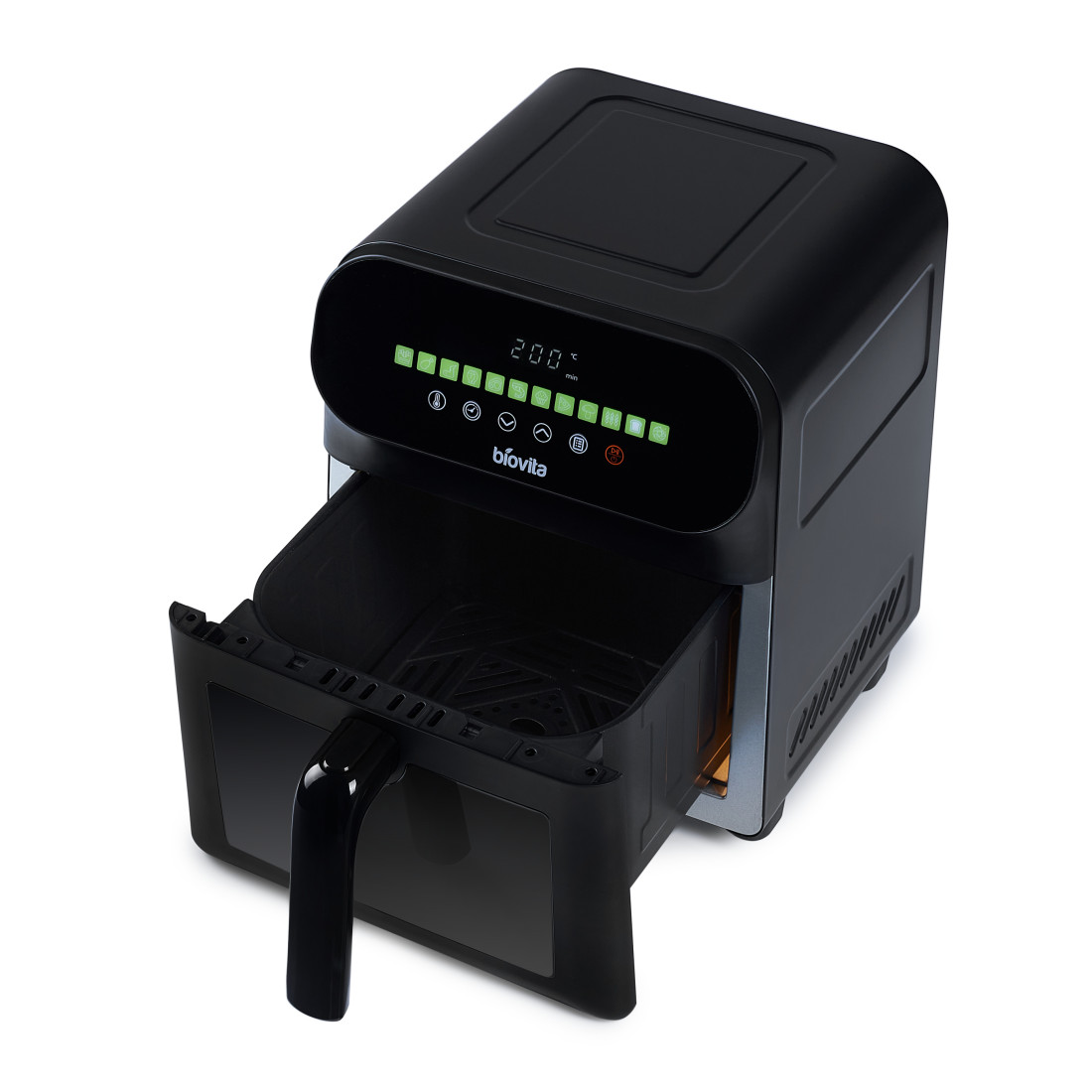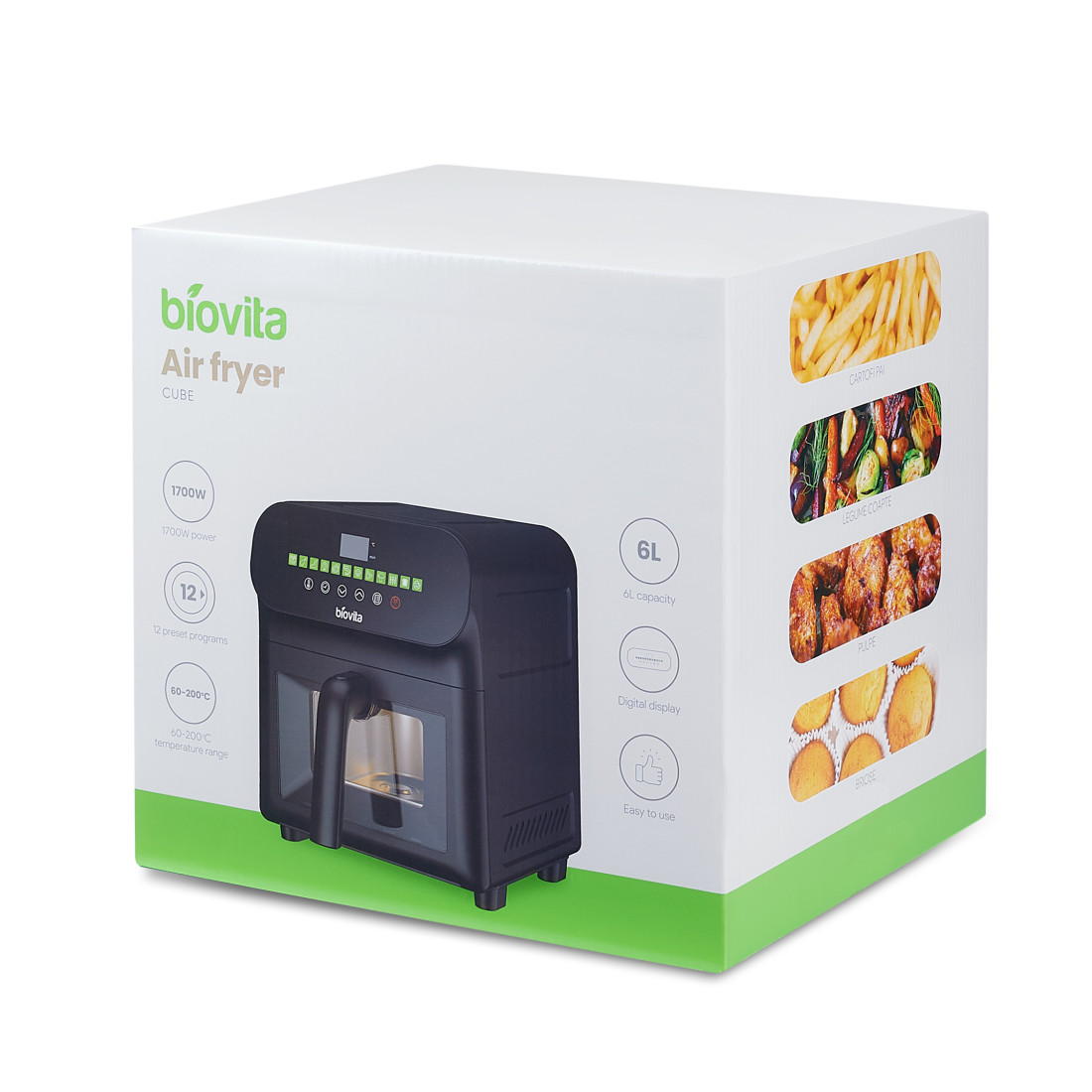 CUBE este friteuza cu aer cald care vă permite să pregătiți preparate delicioase și ușoare, cu foarte puțin sau chiar deloc ulei. CUBE are o capacitate generoasă de 6L, care vă permite să gătiți o cantitate mare de alimente într-o singură tură. CUBE are o putere de 1700W, care vă asigură o gătire rapidă și eficientă, cu un consum redus de energie.