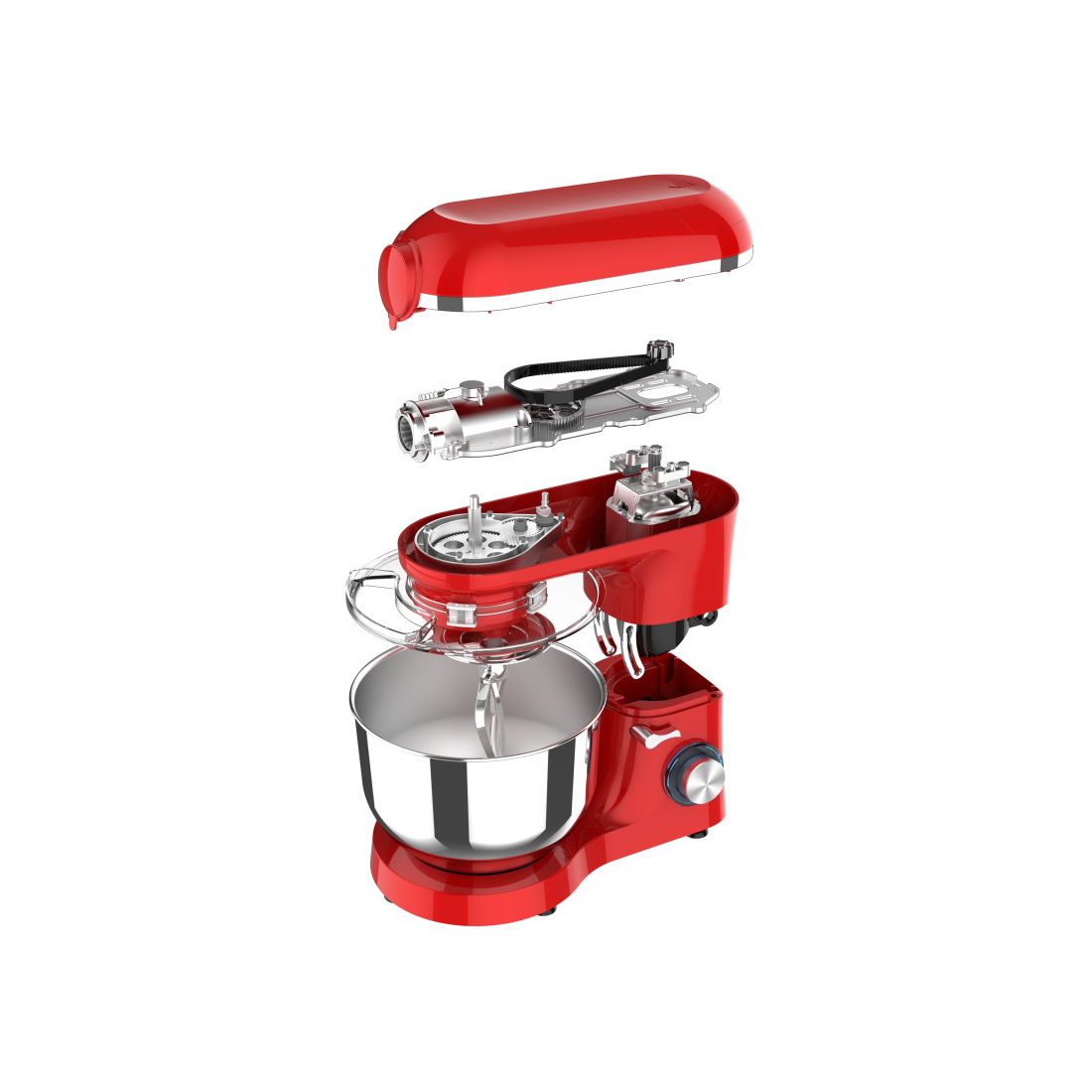 Mixer cu bol Biovita MB-1500SET, Roșu, 1500W, Mișcare eliptică, Bol 6L din Inox, Roșu