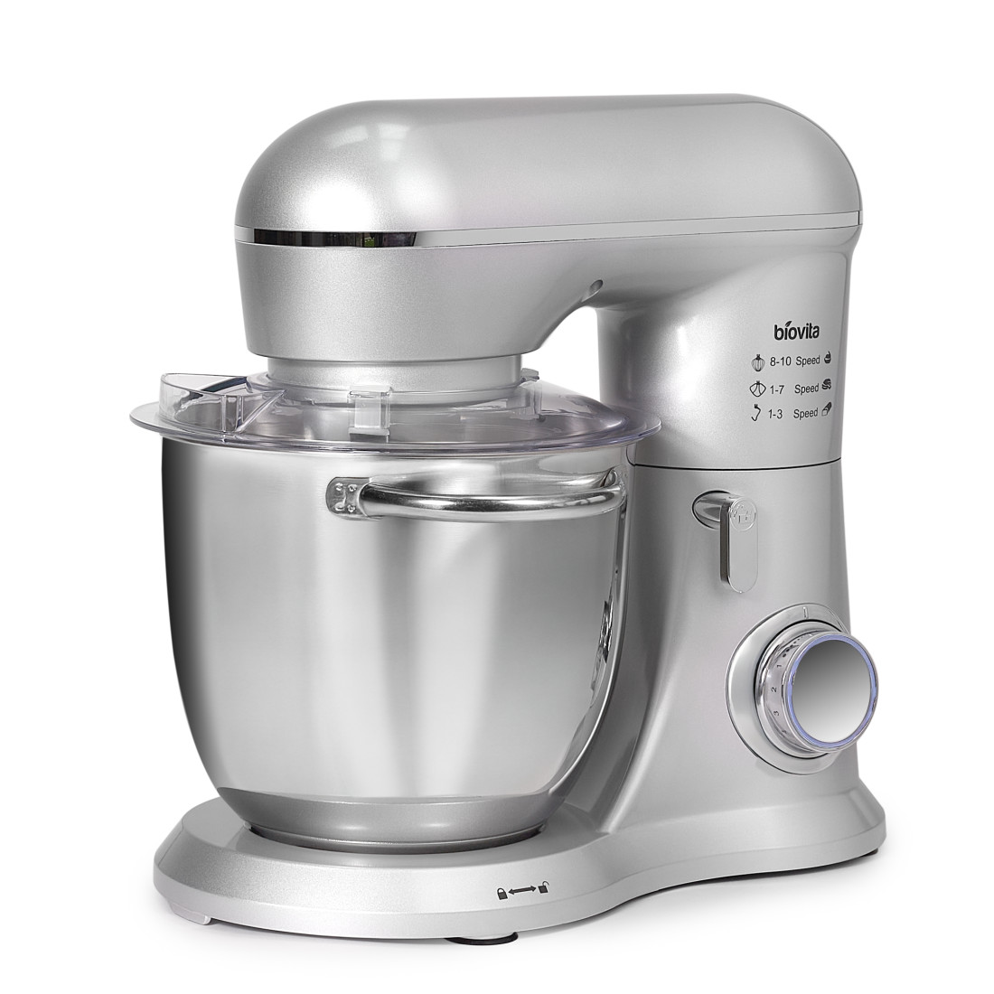 Mixer cu bol ELLA, 1300W, bol inox 4.5L, 10 viteze, 3 accesorii, design compact, argintiu