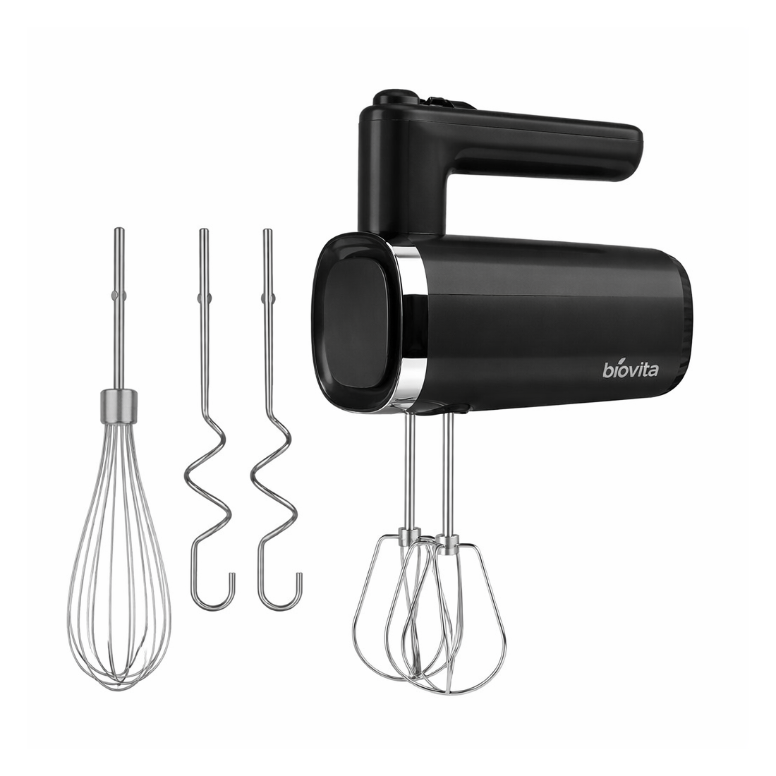 Mixerul este echipat cu un set complet de accesorii din inox, rezistente și ușor de întreținut. Cele două palete sunt ideale pentru amestecarea compozițiilor pentru prăjituri, cele două cârlige din inox sunt perfecte pentru aluaturi, iar telul permite baterea rapidă a ouălor sau frișca. Angrenajele asigură o fiabilitate și o funcționare îndelungată în timp.