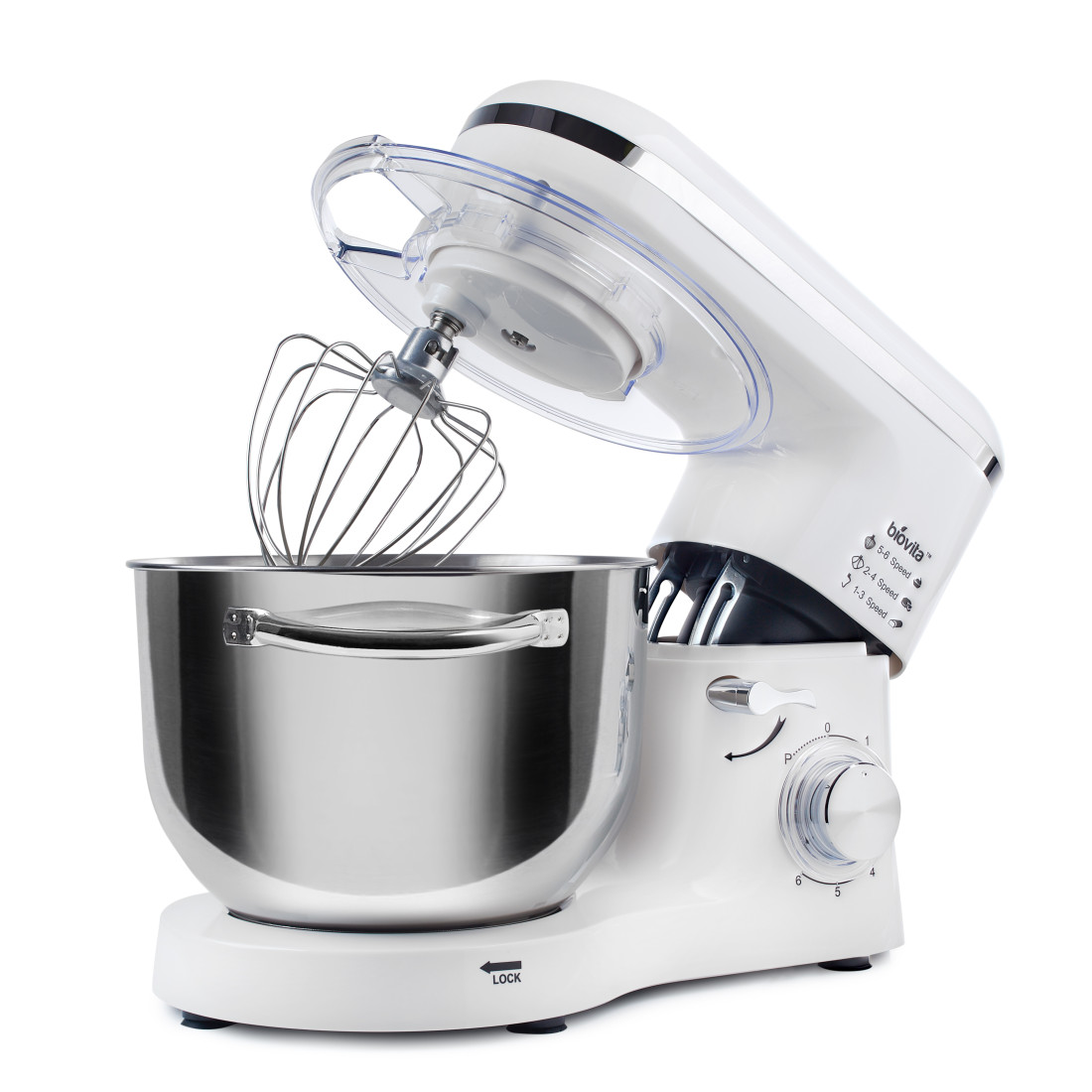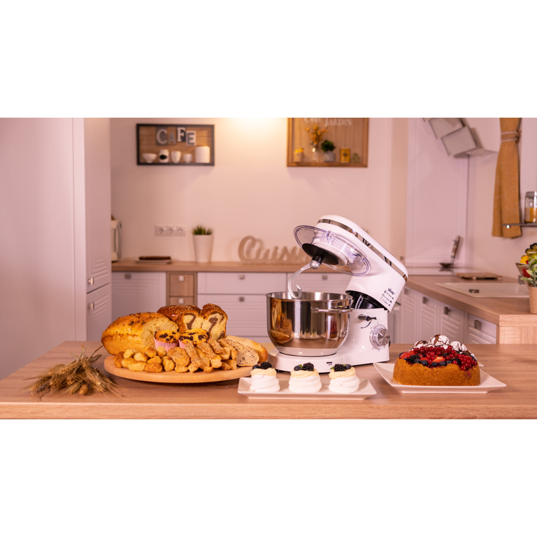 Mixer cu bol de 6L din inox, MB-1500PRO, 2 kg aluat, putere 1500W, 4 accesorii, 6 viteze + puls, Alb