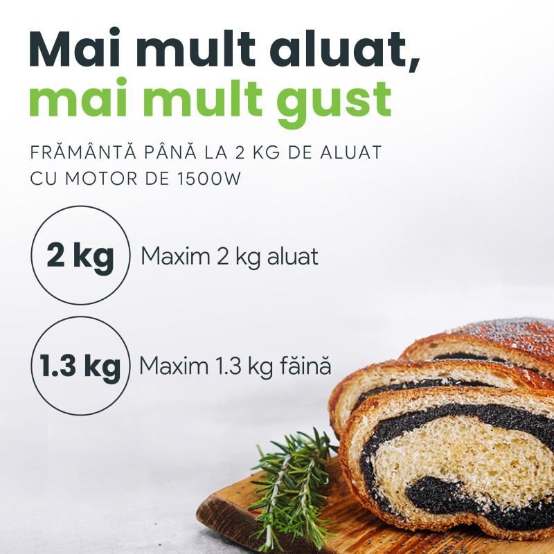 | Capacitate maximă aluat | 2 kg |