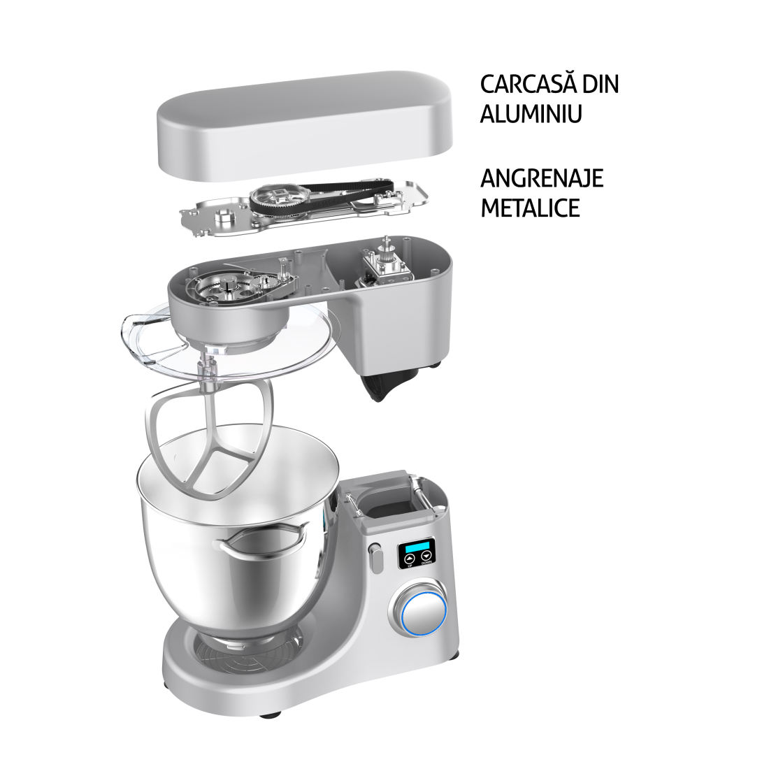 | Capacitatea bolului din inox | 10 Litri (poate frământa până la 2 kg de făină / 3 kg de aluat) |