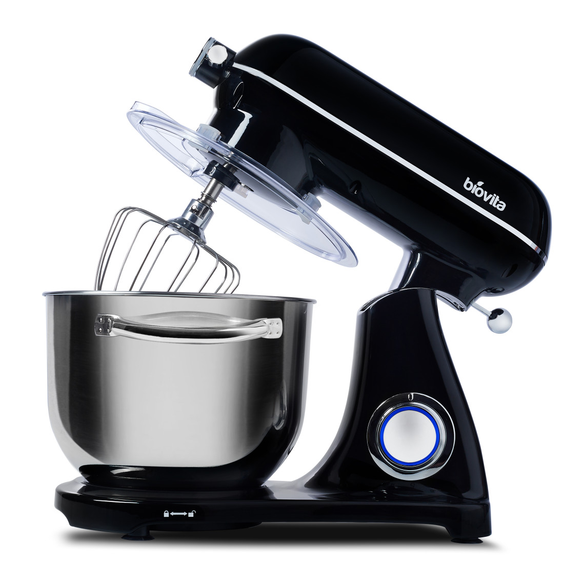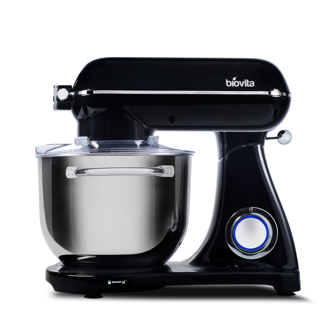 Mixer cu bol Biovita MB-1800-LUX, Motor cu inducție, 1000W, Mișcare eliptică, Bol 6L din Inox, Carcasă din Aluminiu, Negru