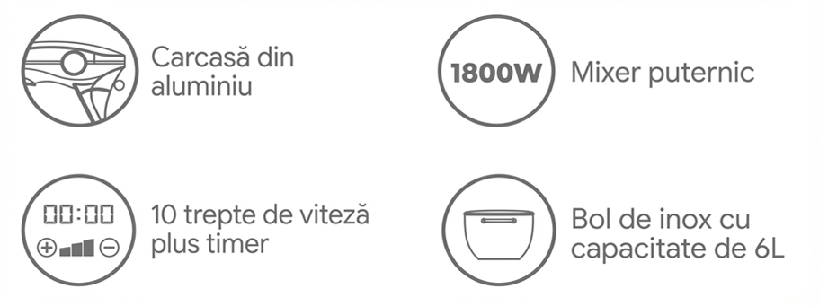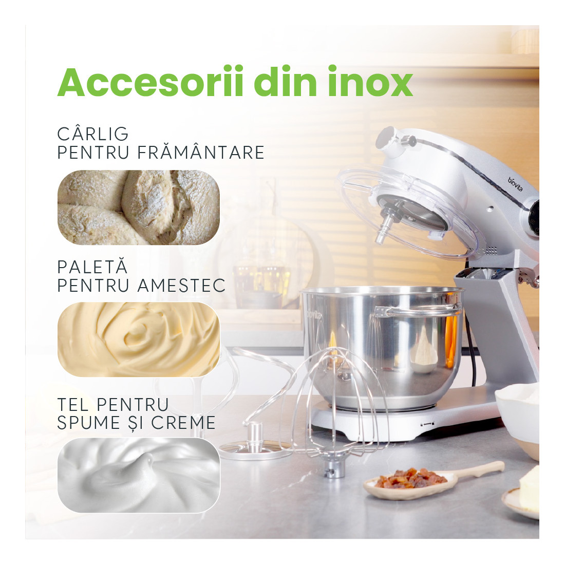 | Accesorii din inox incluse | tel, cârlig pentru aluat, paletă |