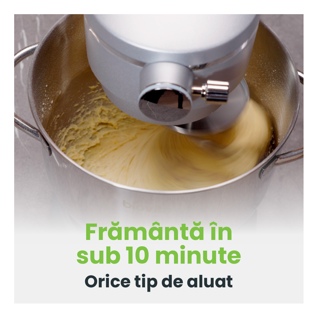 Motorul puternic de 1800 W asigură o funcționare stabilă și constantă, chiar și în cazul ingredientelor dense sau al cantităților mai mari. Puterea motorului permite o mixare uniformă a aluatului, reduce timpul de preparare și oferă un control optim asupra întregului proces de mixare.