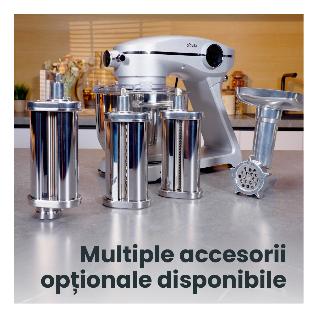 Mixerul cu bol este compatibil cu o gamă variată de accesorii opționale, disponibile separat, care extind funcționalitatea aparatului. Printre acestea se numără accesoriul pentru foi de aluat, accesoriul pentru tagliatelle, accesoriul pentru spaghete, accesoriul pentru tocat carne, precum și accesoriul pentru răzuit și feliat legume. Aceste accesorii nu sunt incluse în prețul mixerului și pot fi achiziționate separat, în funcție de nevoile fiecărui utilizator.