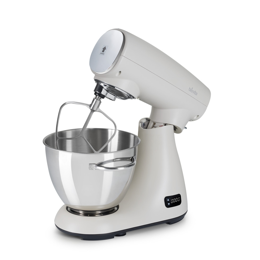 Mixer profesional Biovita MB-1500-MAX PRO, 1500W, Mișcare eliptică, Bol 5L din Inox, Carcasă din Aluminiu, Crem.