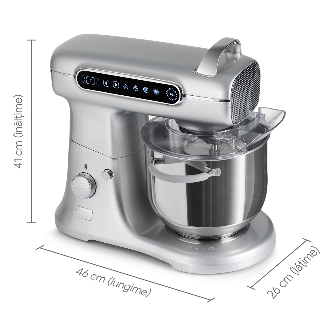 | Accesorii incluse | Tel din inox, cârlig din inox pentru frământare, paletă de amestecare din inox, paletă cu lamele de silicon |