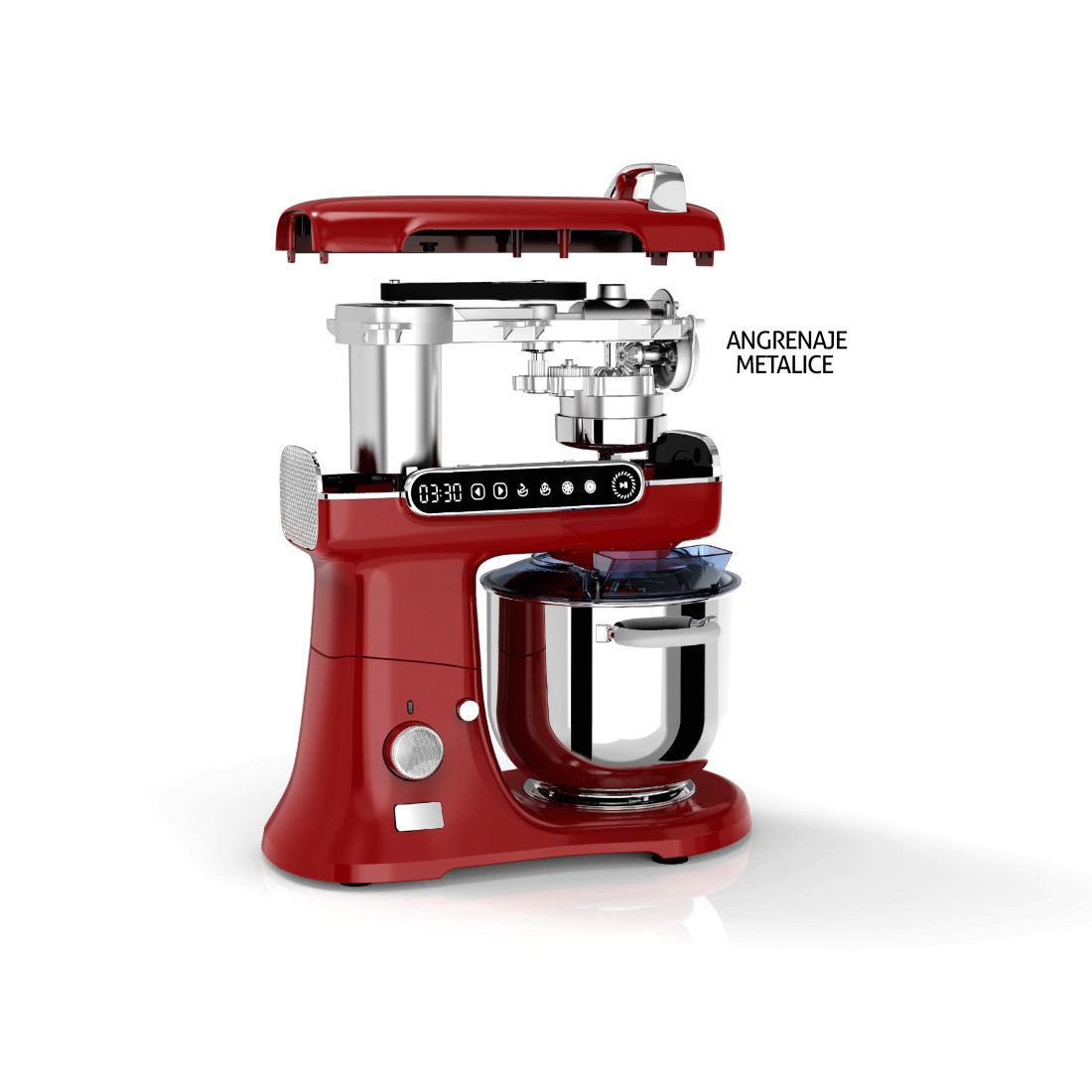 Mixer profesional, bol de 7L din inox,1800W, din Aluminiu, MB-1800-MAX PRO, Rosu