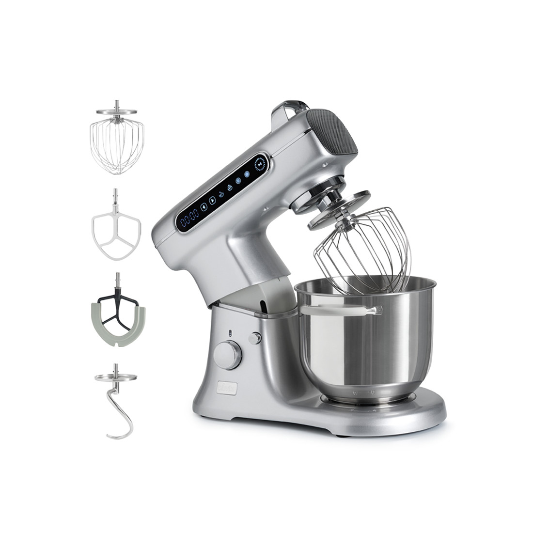 Poți transforma aparatul într-un centru complet adăugând accesorii opționale (compatibile) precum mașina de tocat, dispozitivele pentru paste sau foi de aluat. Baza anti-alunecare menține mixerul stabil pe blat chiar și la viteze mari.