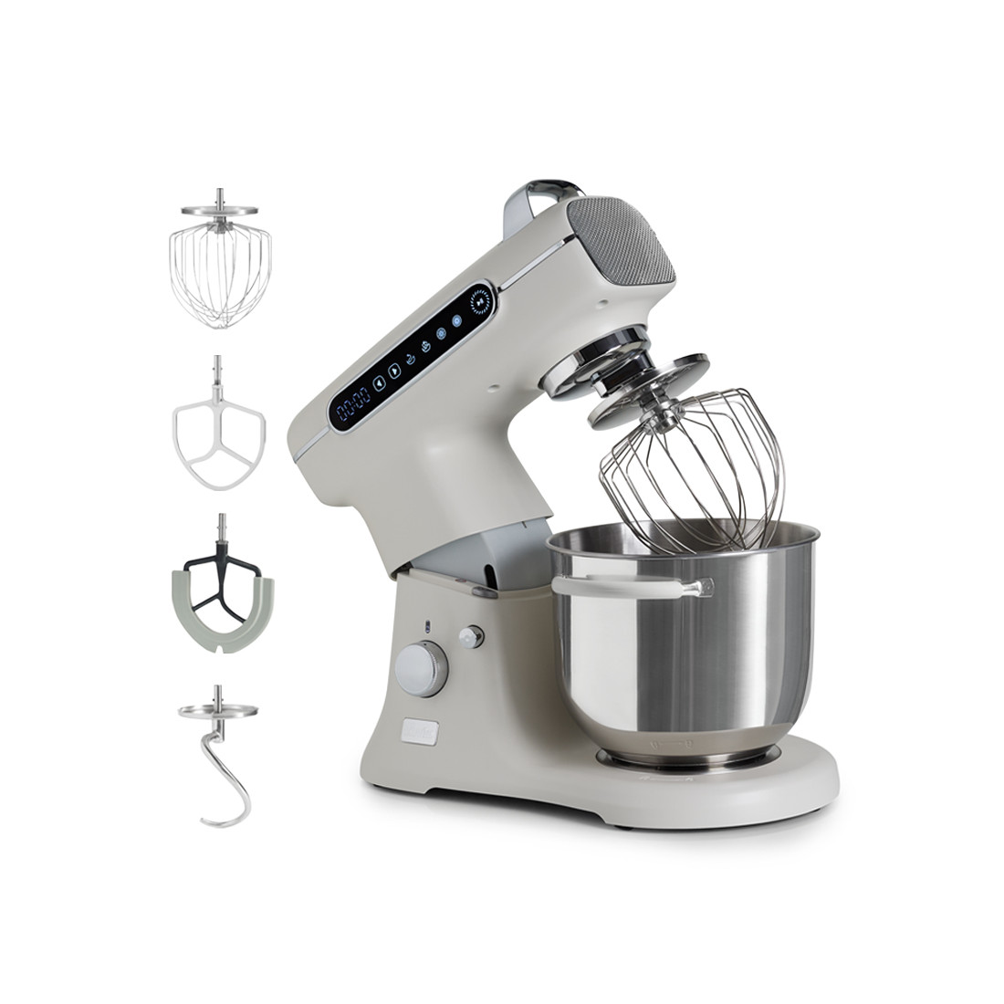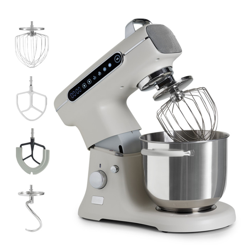 Poți transforma aparatul într-un centru complet adăugând accesorii opționale (compatibile) precum mașina de tocat, dispozitivele pentru paste sau foi de aluat. Baza anti-alunecare menține mixerul stabil pe blat chiar și la viteze mari.
