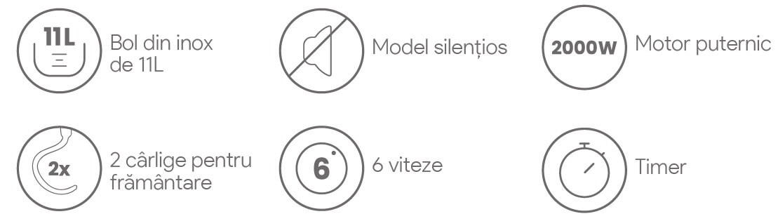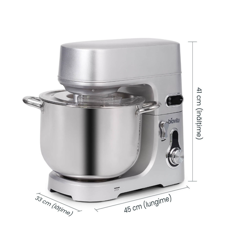 Construcția robustă cu carcasă metalică împreună cu accesoriile din inox pentru frământare și mixare, garantează performanța pe termen lung.