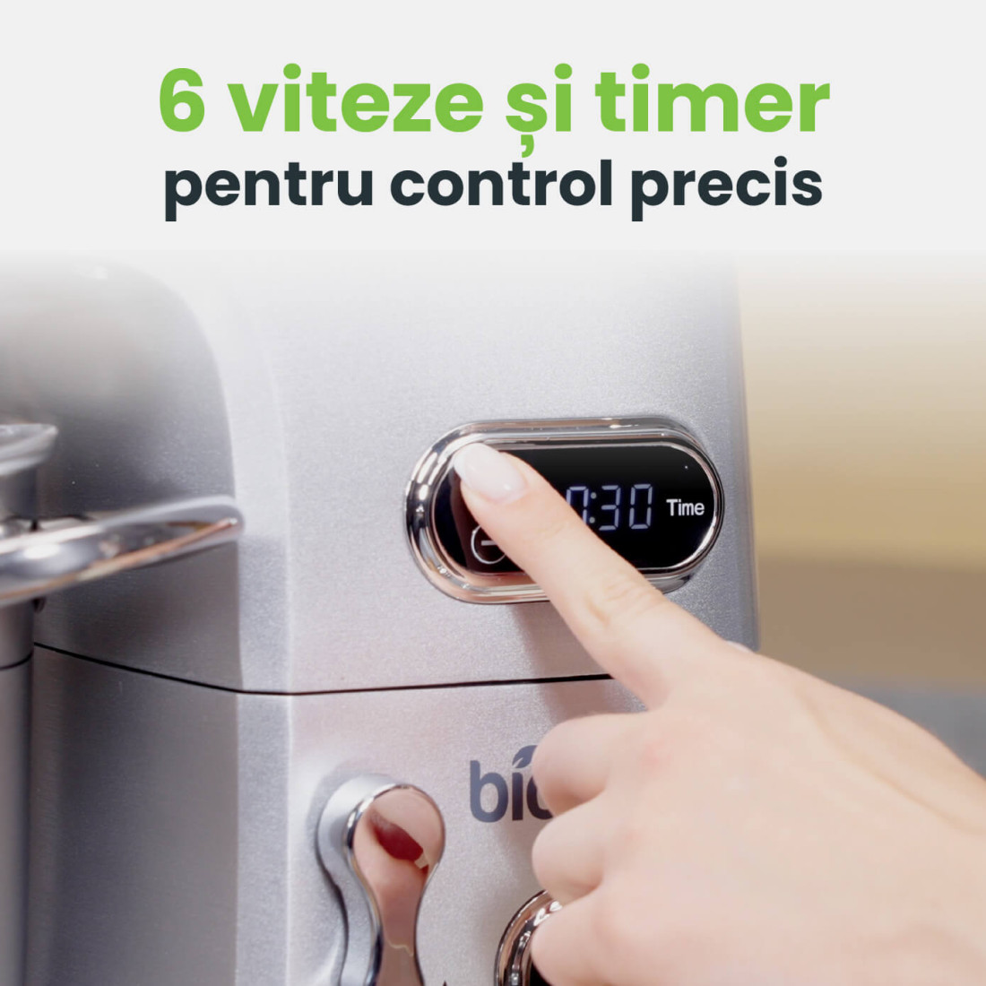 Timerul te ajută să alegi timpul de mixare dorit, pentru rezultate consistente de fiecare dată.