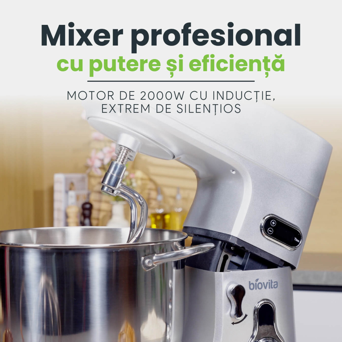 Motorul cu inducție de 2000W îi conferă o performanță excepțională și o funcționare silențioasă acestui mixer profesional.
