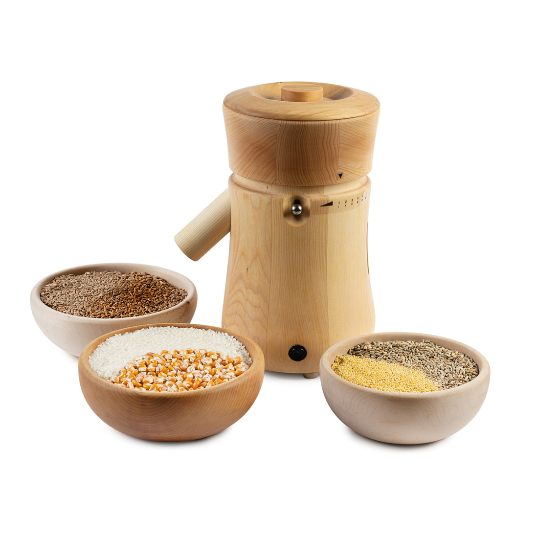 Bucură-te de gustul delicios al pâinii integrale din făină proaspătă de cereale. Cu ajutorul acestei mori poți prepara făină integrală din grâu, porumb, orz ovăz, orez, secară sau mei.