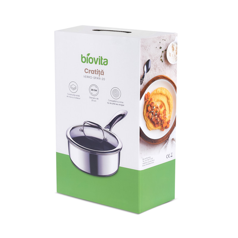 Compactă și versatilă, această cratiță este perfectă pentru porții individuale, încălzirea rapidă a mâncării sau pentru preparate ușoare precum sosuri și creme. Dimensiunea de 20 cm o face ideală pentru utilizarea zilnică, mai ales atunci când gătești pentru una sau două persoane.
