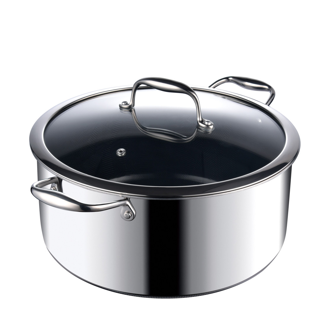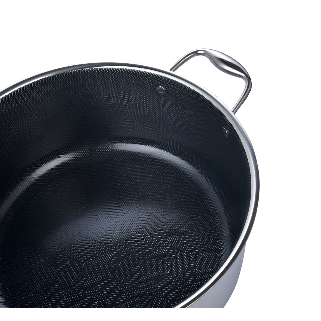 Oală inox și ceramică, cu capac, 8L, antiaderentă, fără PFAS, 28 cm, cu 3 straturi, compatibilă cu orice plită sau aragaz