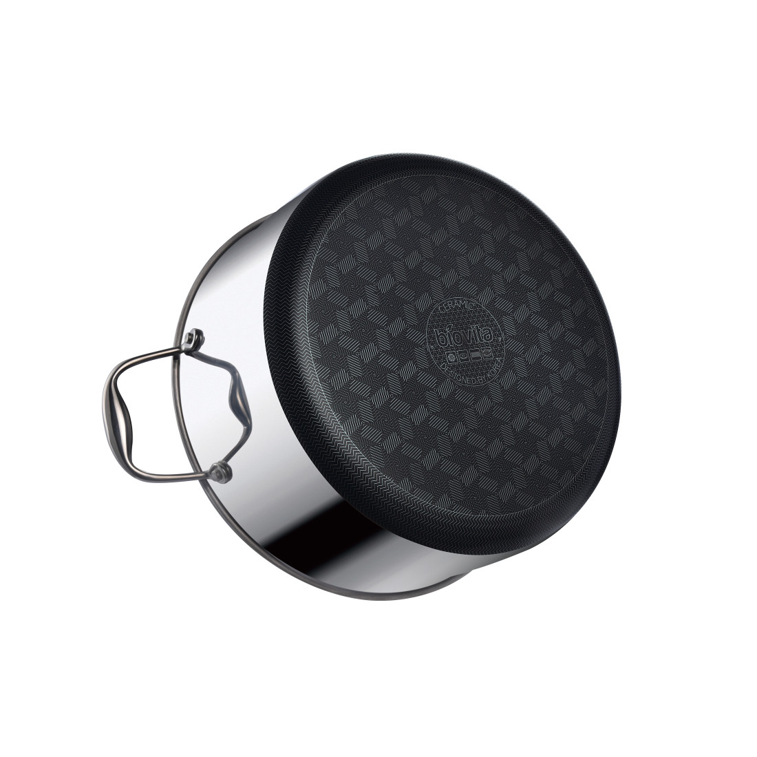 Oală ceramica cu capac și suprafață hibridă ceramică și inox fără PFAS