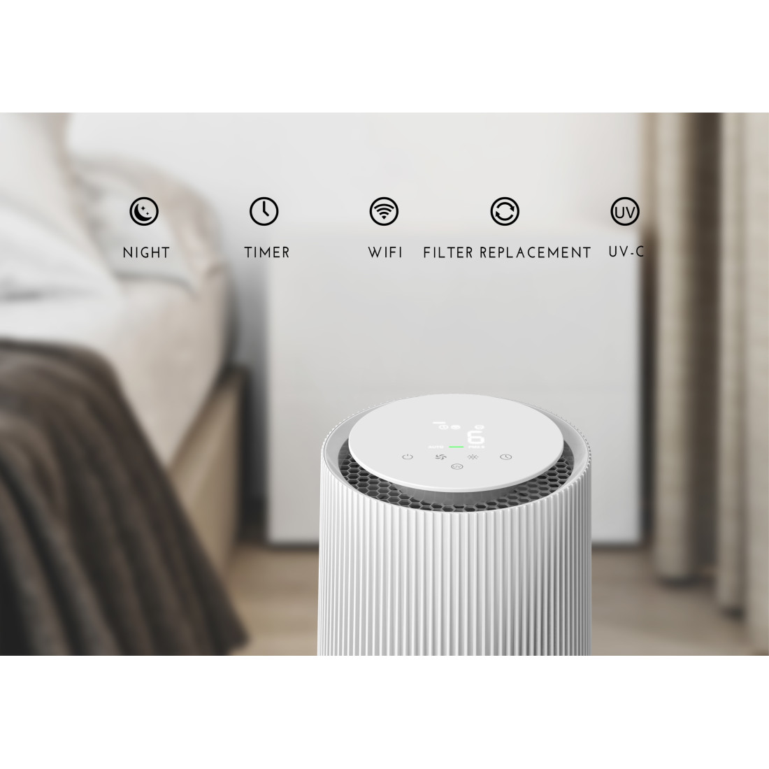 - Lumină UV: Filtrul de aer dispune de lumină UV-C, pentru sterilizarea aerului