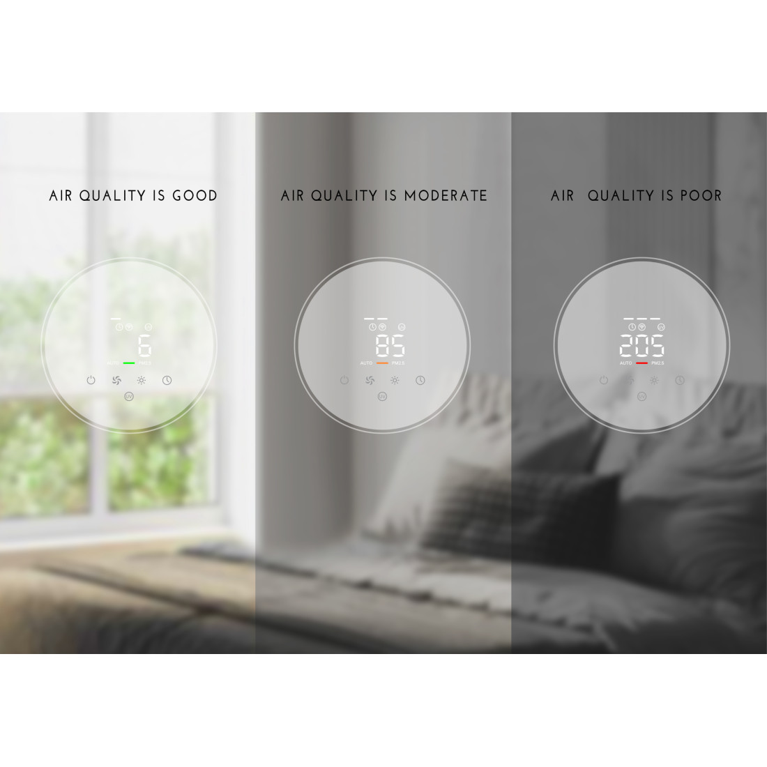 - Model performant: Bucură-te de aer proaspăt în doar câteva minute de filtrare. Potrivit pentru suprafețe de până la 30 m², având CADR 250 m³/h.