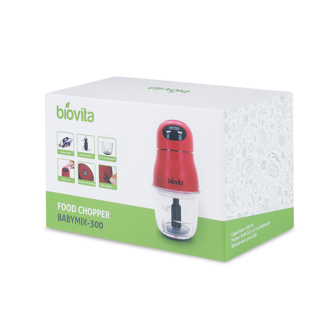 Tocătorul Biovita BabyMix-300 poate fi un ajutor important în prepararea mâncării bebelușului dar și pentru a toca cantități mai mici de ingrediente sau condimente în bucătărie.